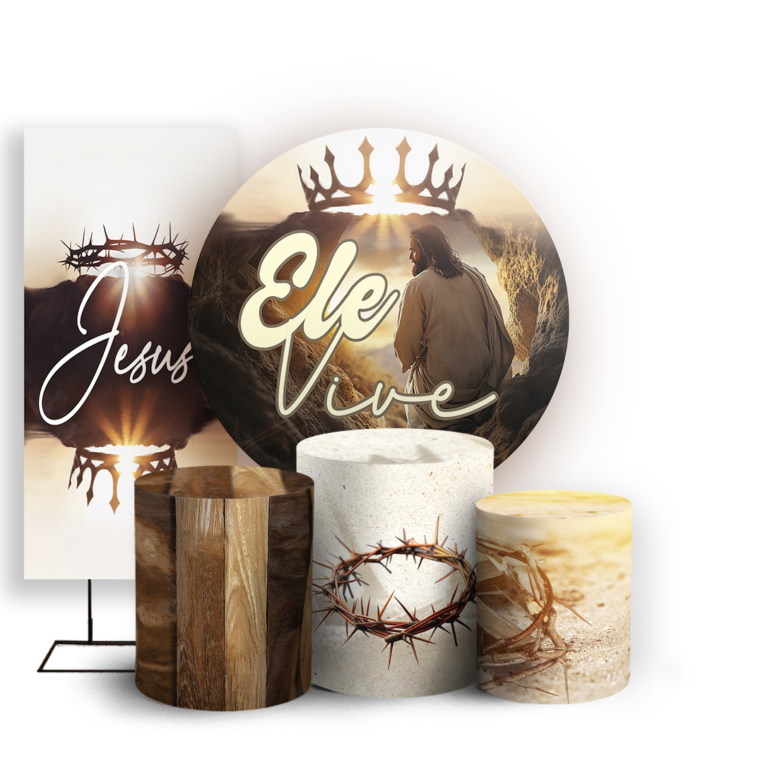 Capas Painel Redondo Trio Cilindro e Faixa Lateral Sublimado - Pascoa