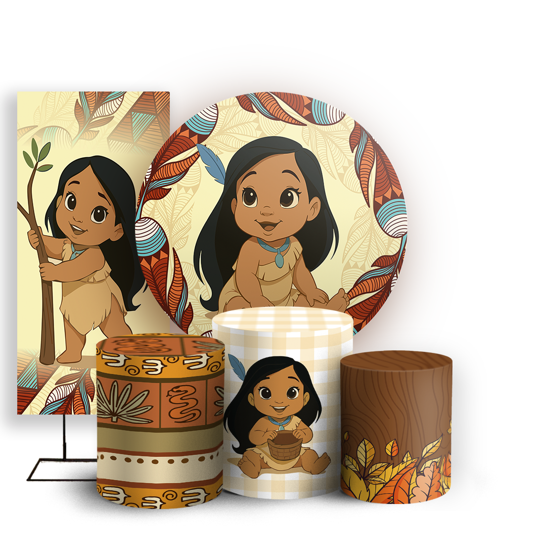Capas Painel Redondo Trio Cilindro e Faixa Lateral Sublimado - Pocahondas Baby