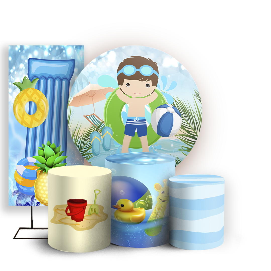 Capas Painel Redondo Trio Cilindro e Faixa Lateral Sublimado - Pool-Party