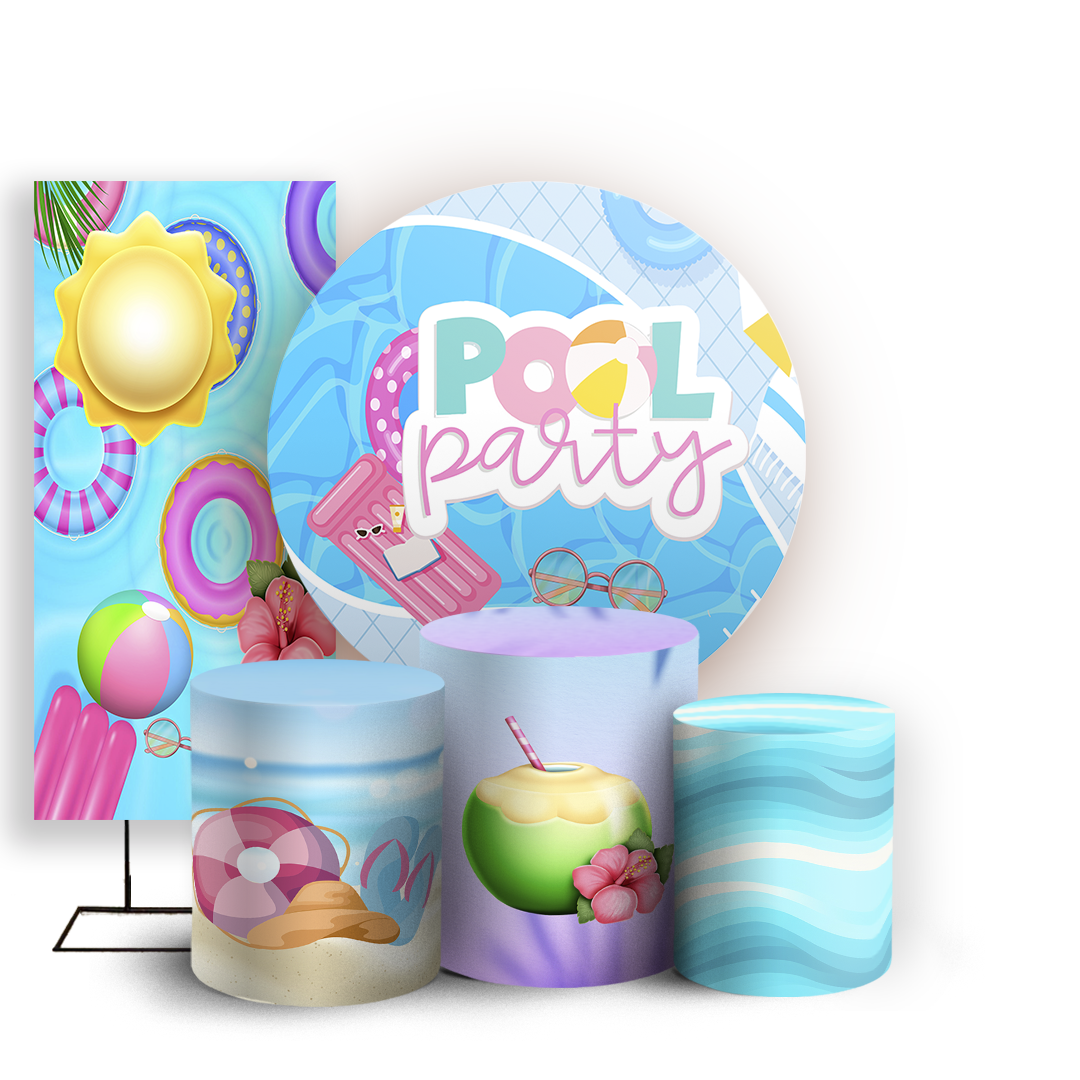 Capas Painel Redondo Trio Cilindro e Faixa Lateral Sublimado - Pool-Party