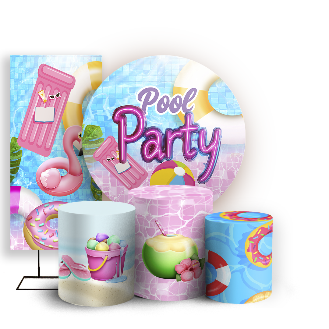 Capas Painel Redondo Trio Cilindro e Faixa Lateral Sublimado - Pool-Party