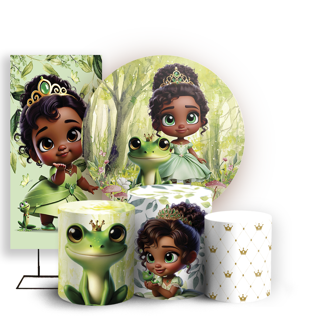 Capas Painel Redondo Trio Cilindro e Faixa Lateral Sublimado - Princesa Tiana