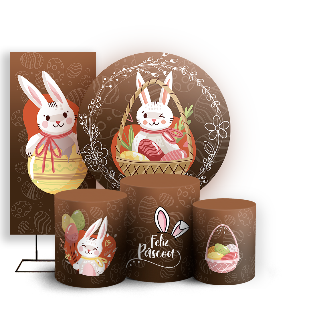 Capas Painel Redondo Trio Cilindro e Faixa Lateral Sublimado - Páscoa