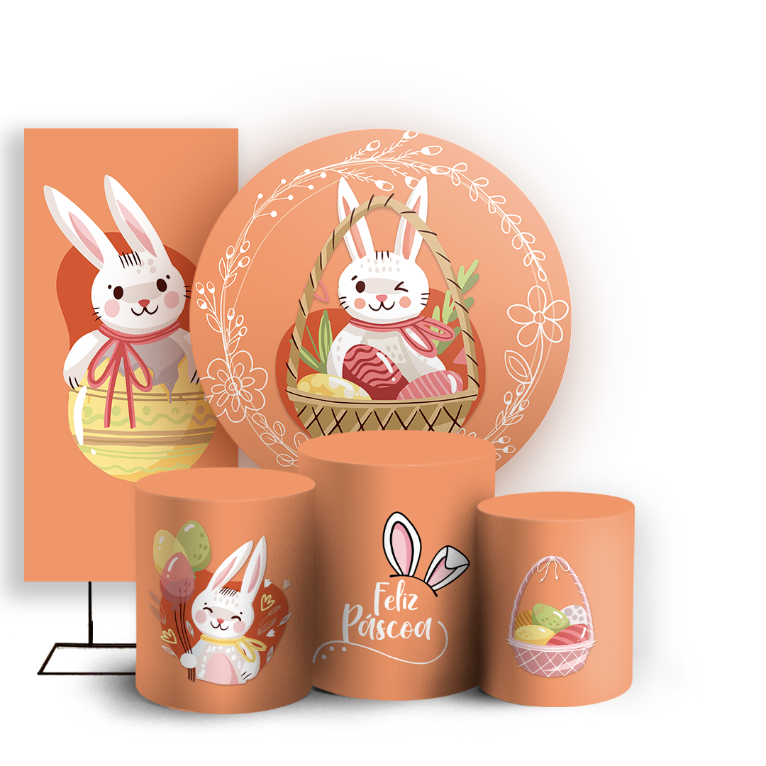 Capas Painel Redondo Trio Cilindro e Faixa Lateral Sublimado - Páscoa
