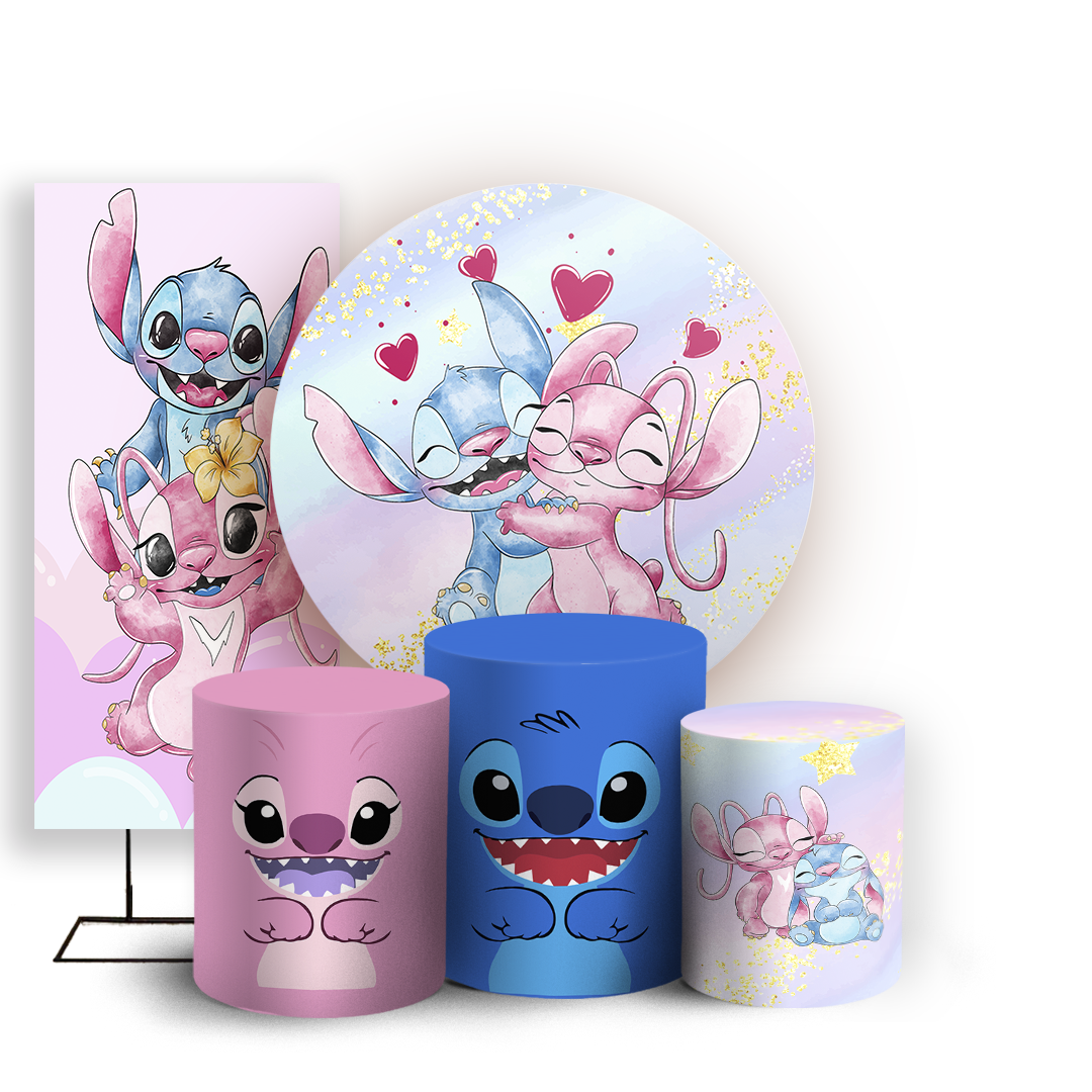Capas Painel Redondo Trio Cilindro e Faixa Lateral Sublimado - Stitch