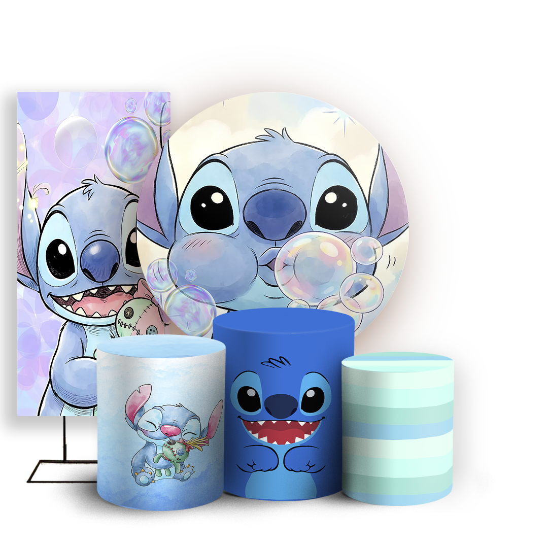 Capas Painel Redondo Trio Cilindro e Faixa Lateral Sublimado - Stitch