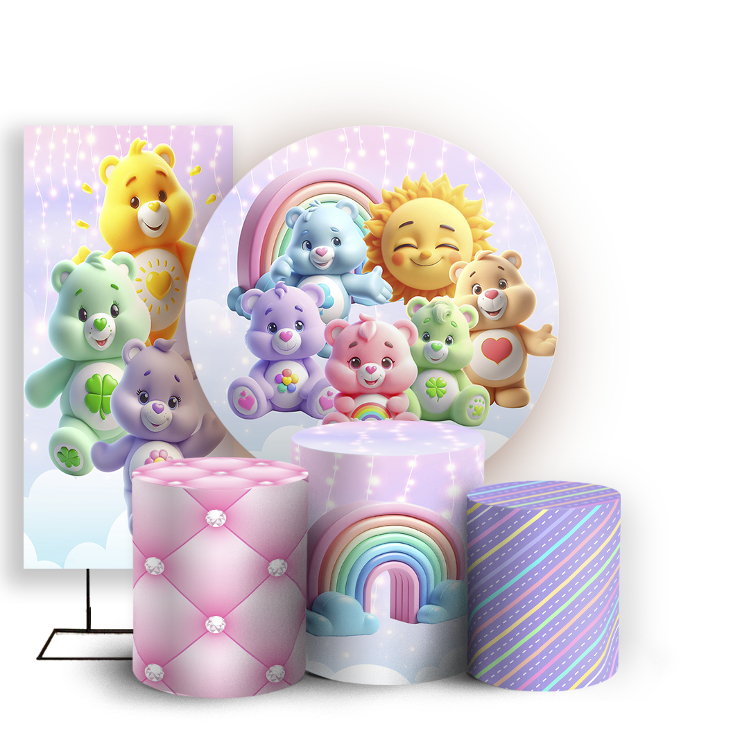Capas Painel Redondo Trio Cilindro e Faixa Lateral Sublimado - Ursinhos Carinhosos