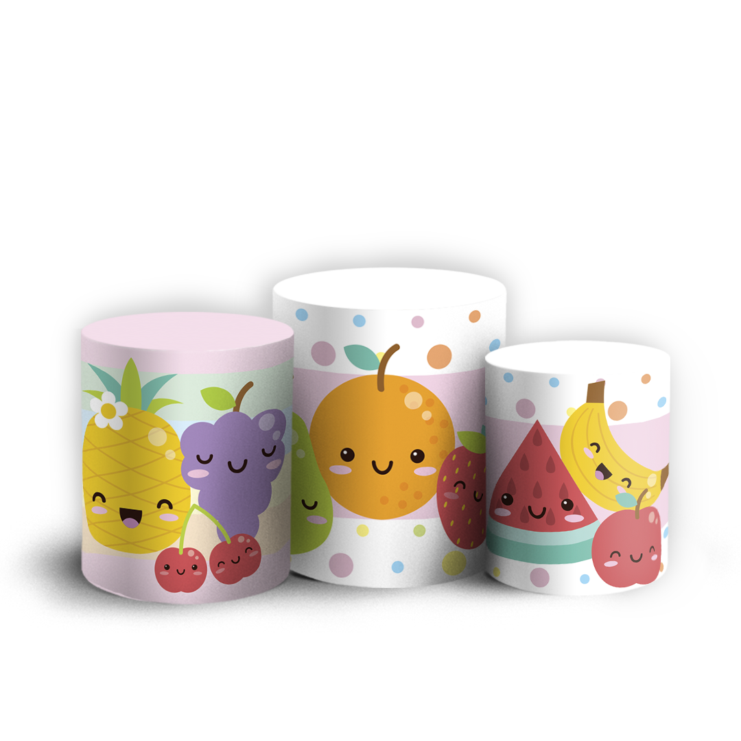 Capas Trio Cilindro Sublimado Vest Facil - Frutas Cute