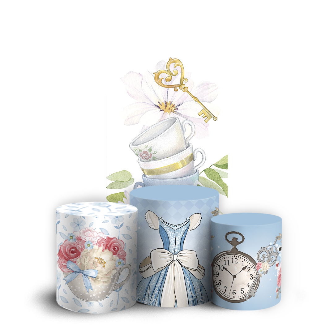 Nosso kit Faixa + Trio de Capas para Cilindros Sublimadas, possuem acabamento em overloque e é ideal para criar aquela decoração de tirar o folego!