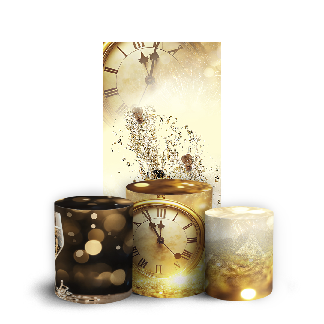 Nosso kit Faixa + Trio de Capas para Cilindros Sublimadas, possuem acabamento em overloque e é ideal para criar aquela decoração de tirar o folego!