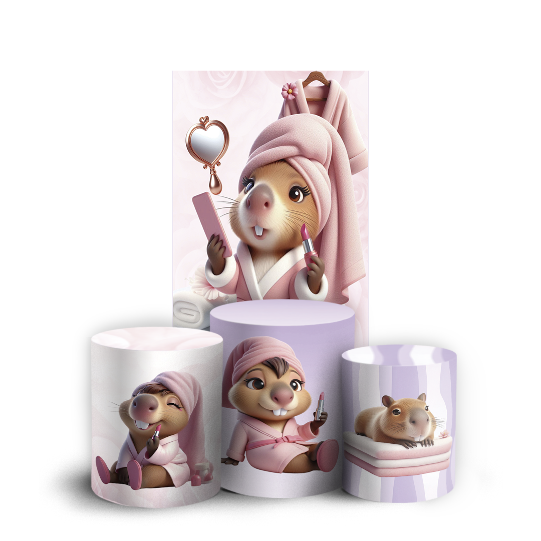 Nosso kit Faixa + Trio de Capas para Cilindros Sublimadas, possuem acabamento em overloque e é ideal para criar aquela decoração de tirar o folego!