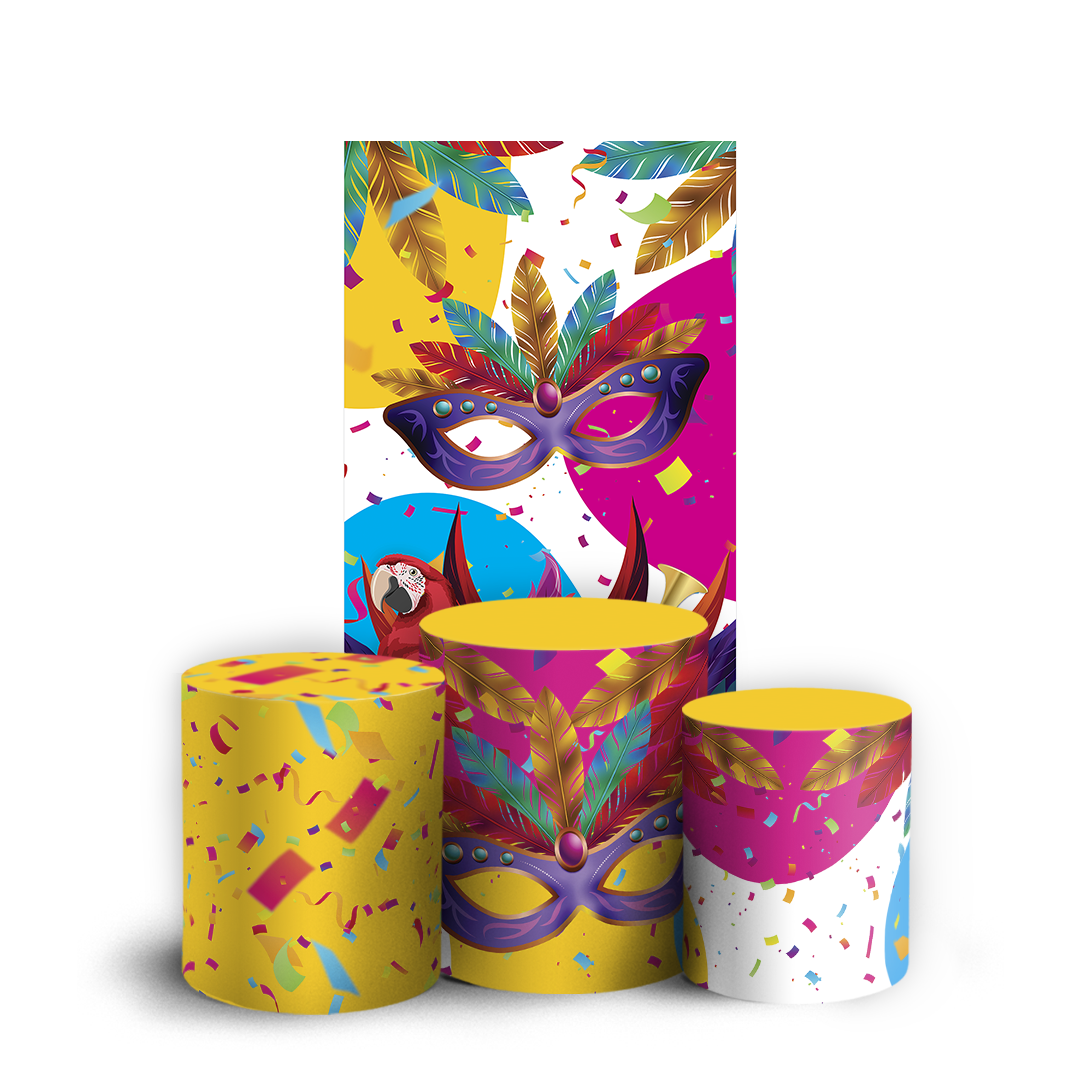 Nosso kit Faixa + Trio de Capas para Cilindros Sublimadas, possuem acabamento em overloque e é ideal para criar aquela decoração de tirar o folego!