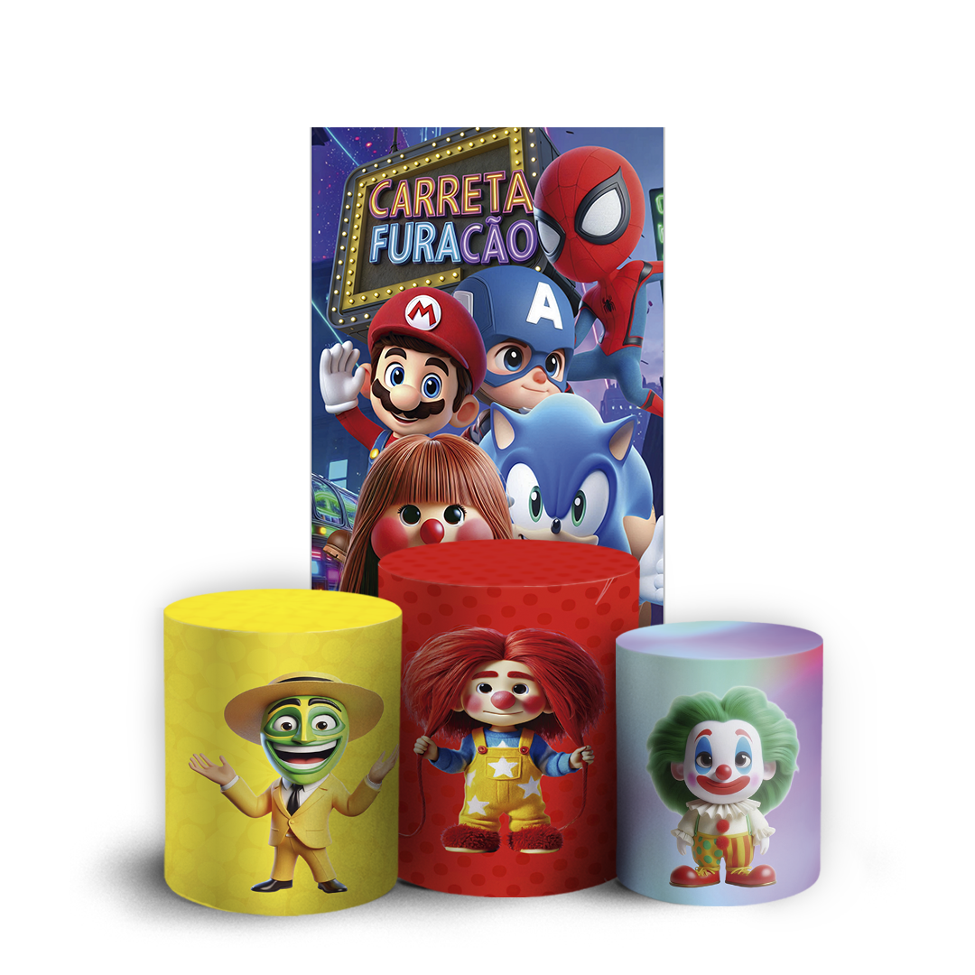 Nosso kit Faixa + Trio de Capas para Cilindros Sublimadas, possuem acabamento em overloque e é ideal para criar aquela decoração de tirar o folego!