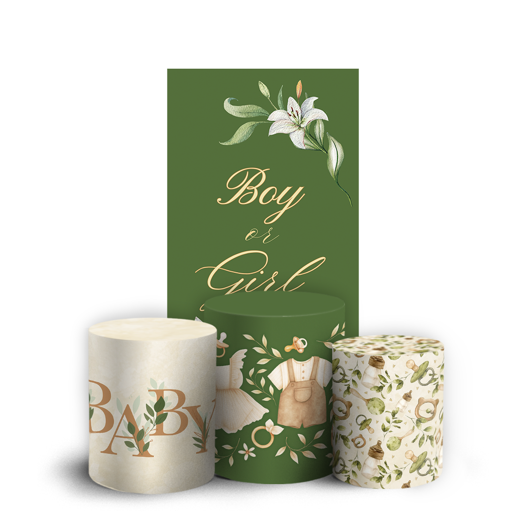 Nosso kit Faixa + Trio de Capas para Cilindros Sublimadas, possuem acabamento em overloque e é ideal para criar aquela decoração de tirar o folego!