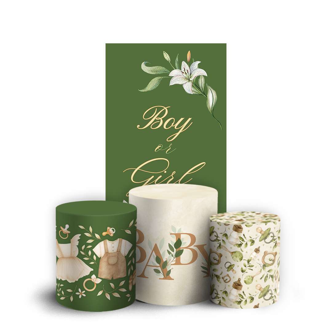 Nosso kit Faixa + Trio de Capas para Cilindros Sublimadas, possuem acabamento em overloque e é ideal para criar aquela decoração de tirar o folego!