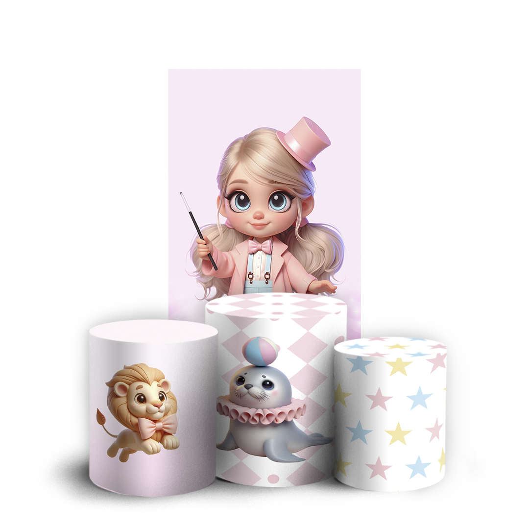 Nosso kit Faixa + Trio de Capas para Cilindros Sublimadas, possuem acabamento em overloque e é ideal para criar aquela decoração de tirar o folego!