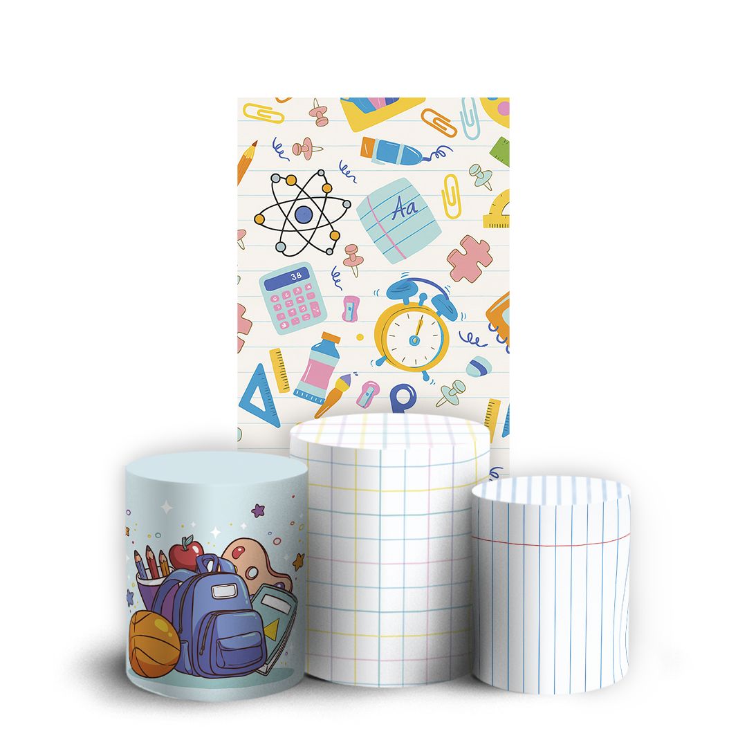 Nosso kit Faixa + Trio de Capas para Cilindros Sublimadas, possuem acabamento em overloque e é ideal para criar aquela decoração de tirar o folego!