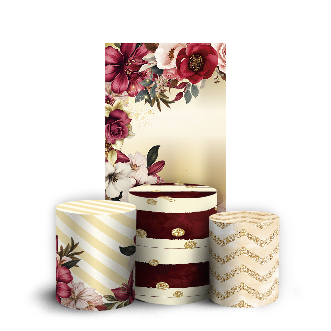 Nosso kit Faixa + Trio de Capas para Cilindros Sublimadas, possuem acabamento em overloque e é ideal para criar aquela decoração de tirar o folego!