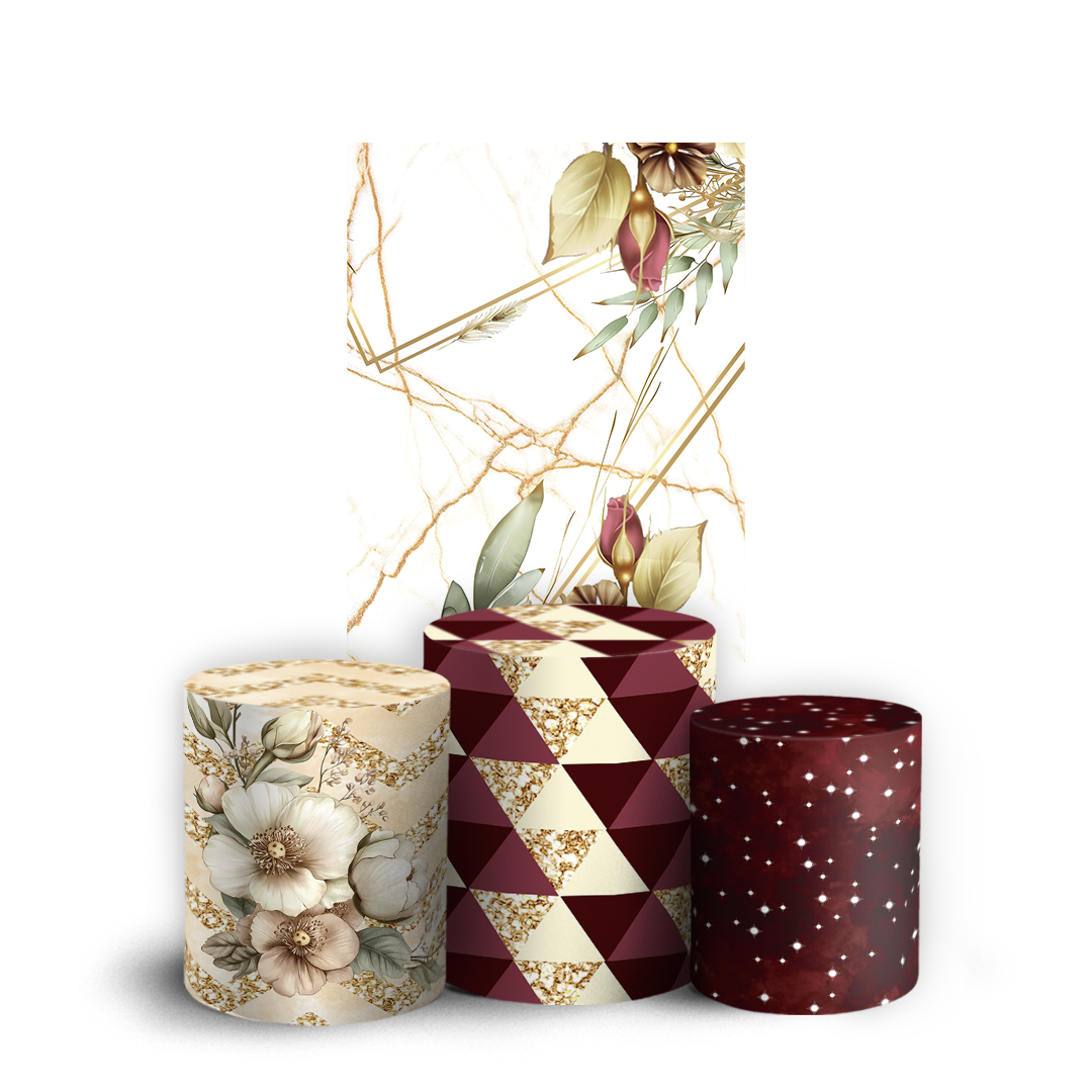 Nosso kit Faixa + Trio de Capas para Cilindros Sublimadas, possuem acabamento em overloque e é ideal para criar aquela decoração de tirar o folego!