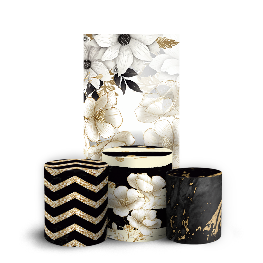 Nosso kit Faixa + Trio de Capas para Cilindros Sublimadas, possuem acabamento em overloque e é ideal para criar aquela decoração de tirar o folego!