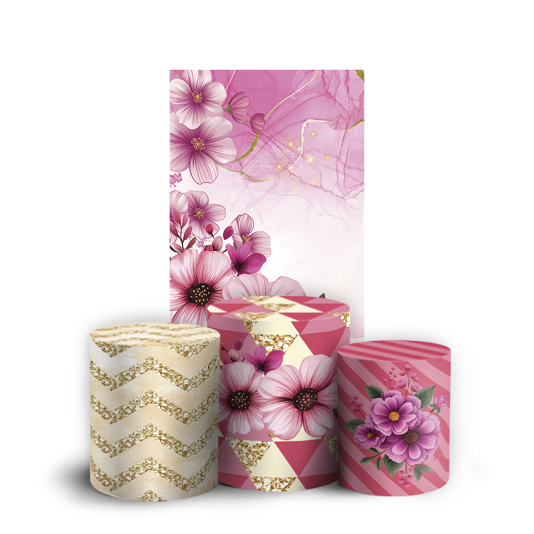 Nosso kit Faixa + Trio de Capas para Cilindros Sublimadas, possuem acabamento em overloque e é ideal para criar aquela decoração de tirar o folego!