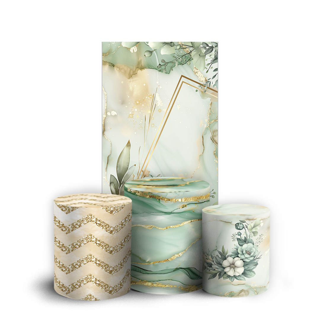 Nosso kit Faixa + Trio de Capas para Cilindros Sublimadas, possuem acabamento em overloque e é ideal para criar aquela decoração de tirar o folego!