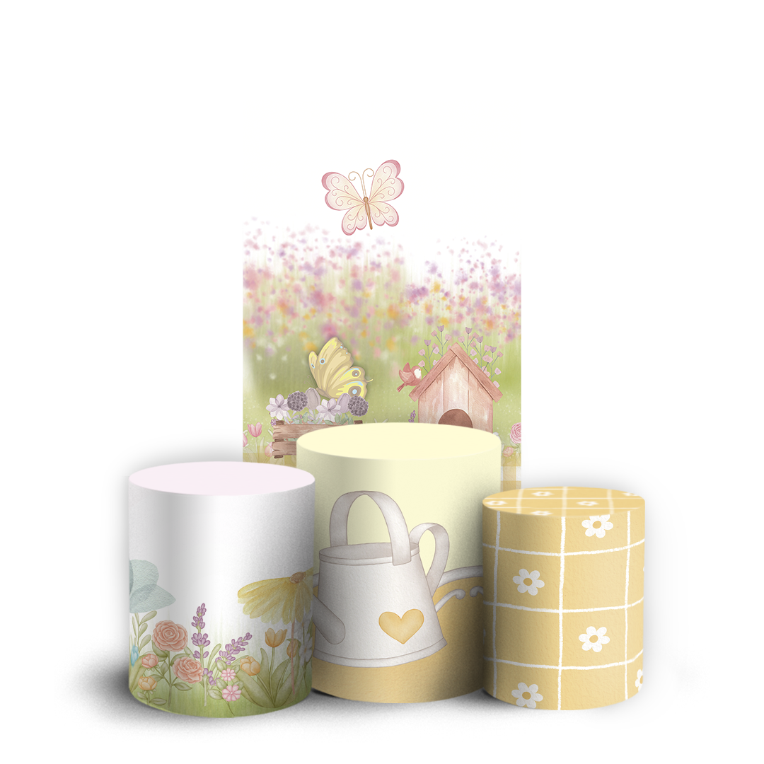 Nosso kit Faixa + Trio de Capas para Cilindros Sublimadas, possuem acabamento em overloque e é ideal para criar aquela decoração de tirar o folego!