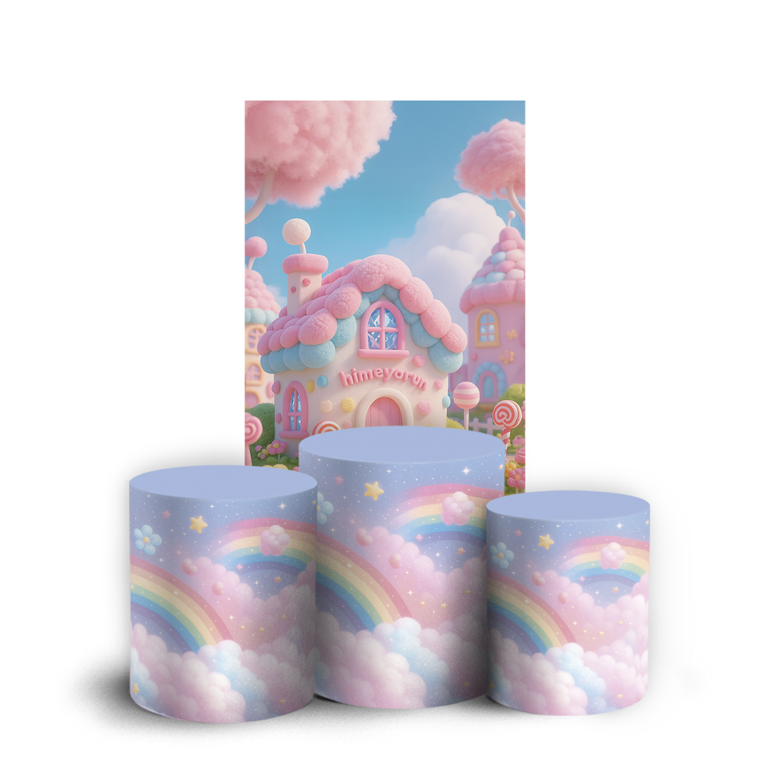 Nosso kit Faixa + Trio de Capas para Cilindros Sublimadas, possuem acabamento em overloque e é ideal para criar aquela decoração de tirar o folego!