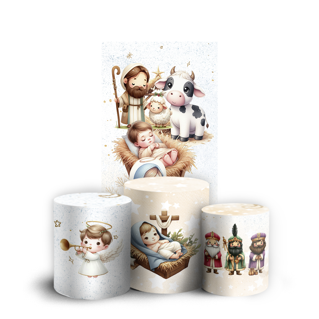 Nosso kit Faixa + Trio de Capas para Cilindros Sublimadas, possuem acabamento em overloque e é ideal para criar aquela decoração de tirar o folego!