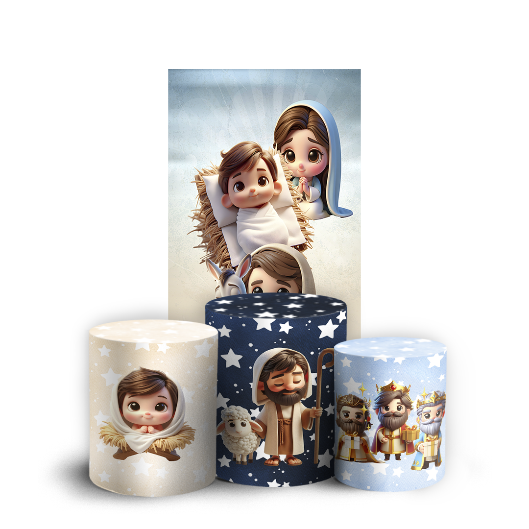 Nosso kit Faixa + Trio de Capas para Cilindros Sublimadas, possuem acabamento em overloque e é ideal para criar aquela decoração de tirar o folego!