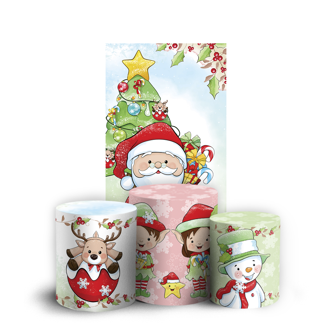 Nosso kit Faixa + Trio de Capas para Cilindros Sublimadas, possuem acabamento em overloque e é ideal para criar aquela decoração de tirar o folego!