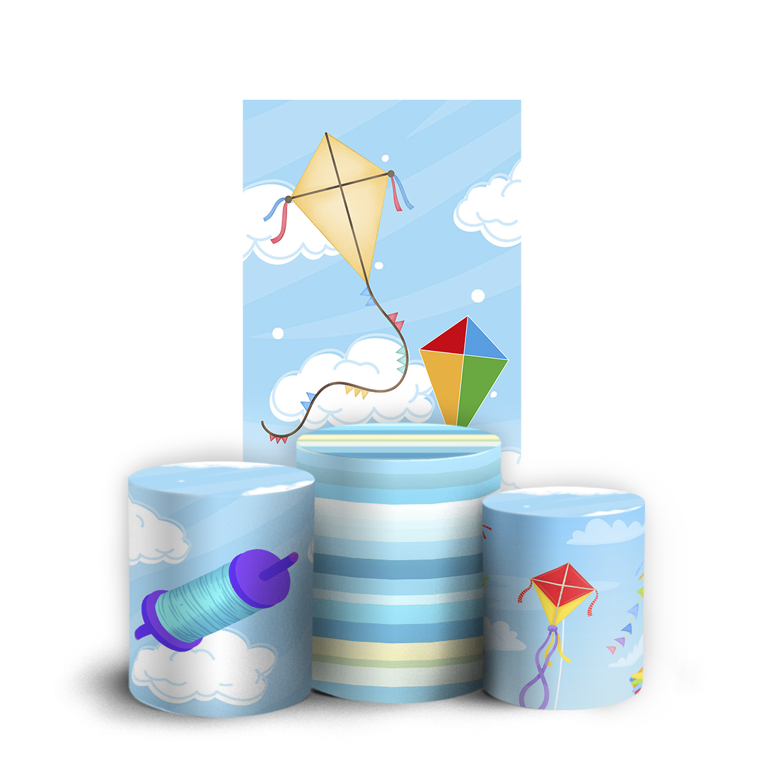 Nosso kit Faixa + Trio de Capas para Cilindros Sublimadas, possuem acabamento em overloque e é ideal para criar aquela decoração de tirar o folego!