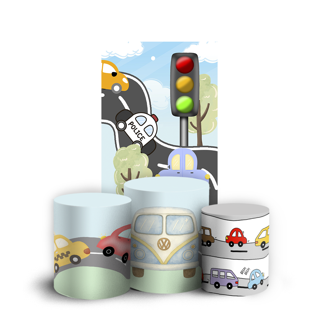 Nosso kit Faixa + Trio de Capas para Cilindros Sublimadas, possuem acabamento em overloque e é ideal para criar aquela decoração de tirar o folego!
