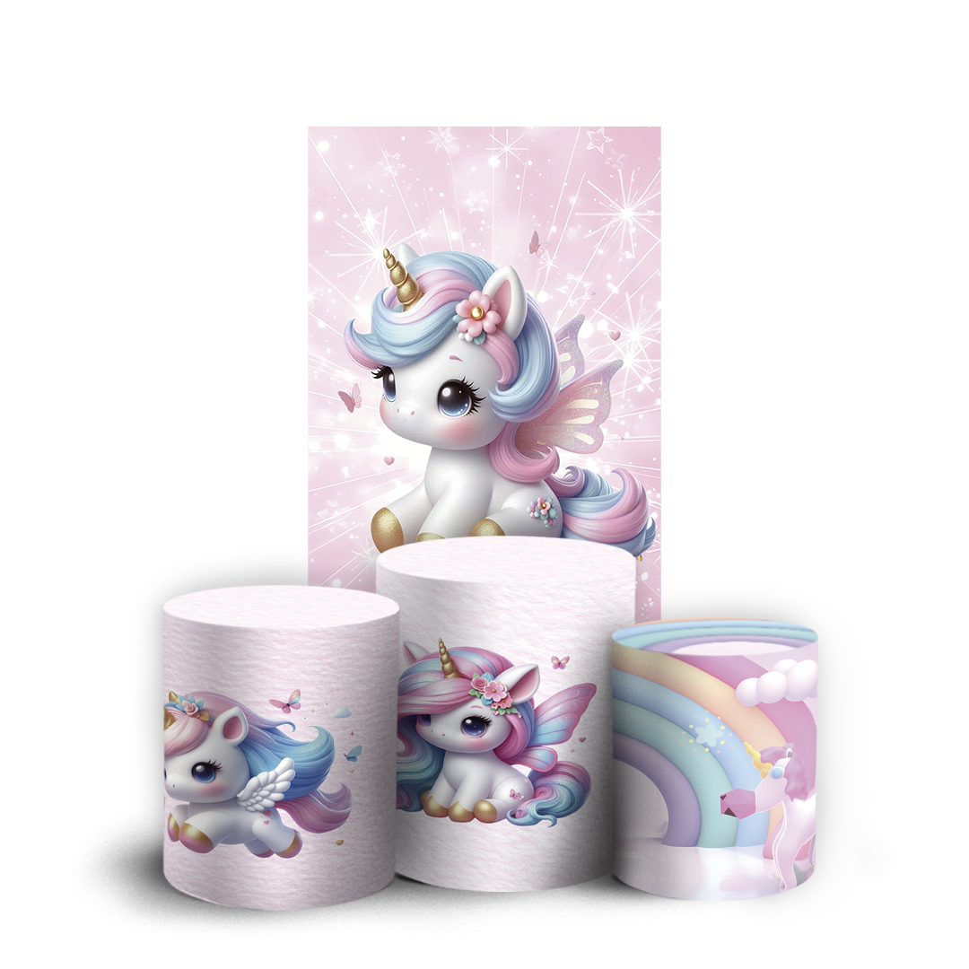 Nosso kit Faixa + Trio de Capas para Cilindros Sublimadas, possuem acabamento em overloque e é ideal para criar aquela decoração de tirar o folego!