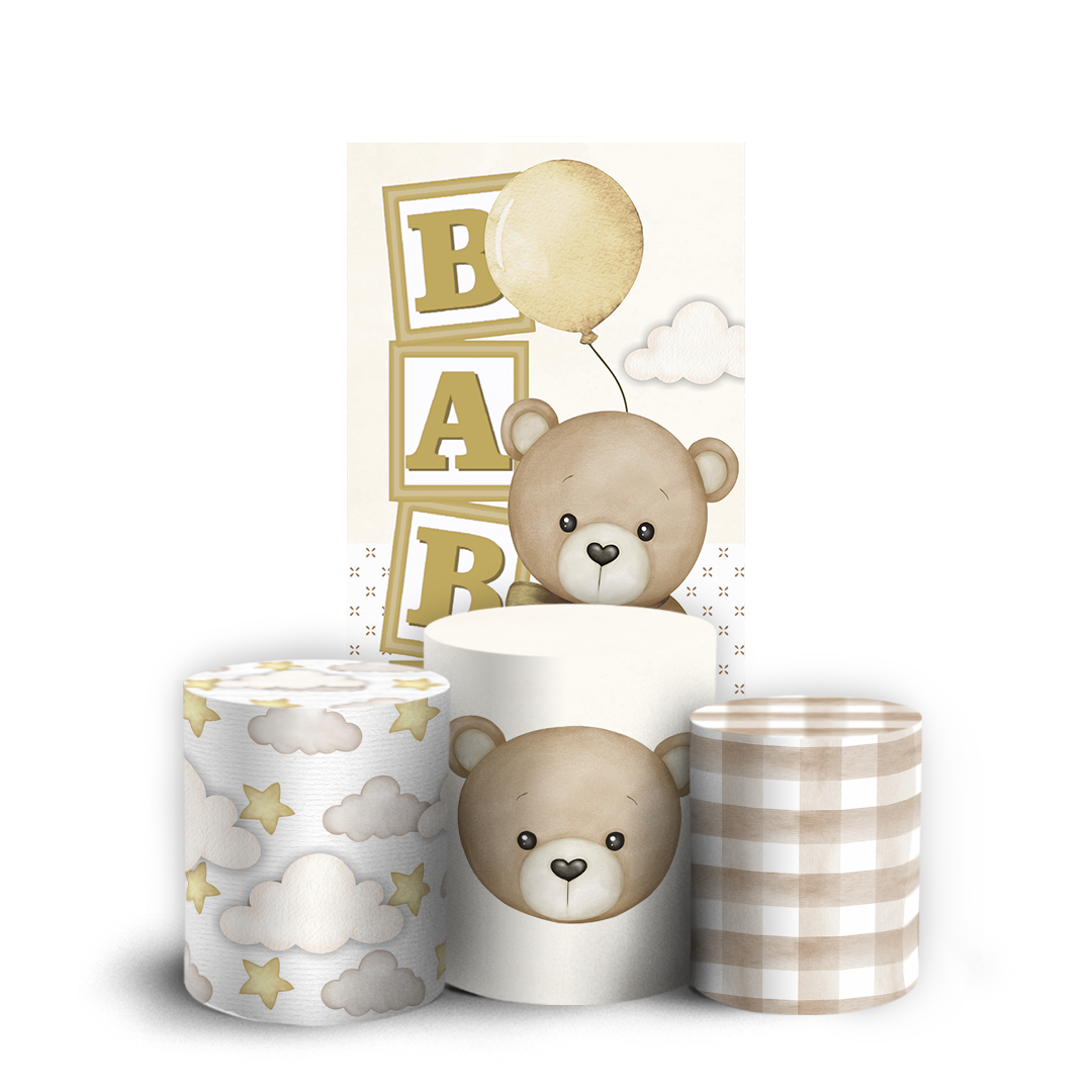 Faixa Lateral e Trio Cilindro Sublimado 3D Vest Facil - Ursinho Bege