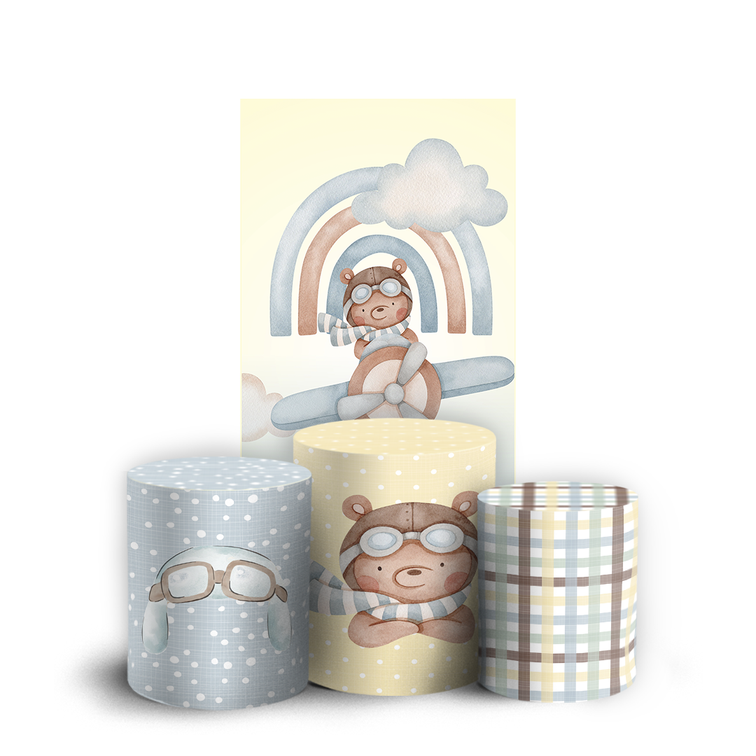 Nosso kit Faixa + Trio de Capas para Cilindros Sublimadas, possuem acabamento em overloque e é ideal para criar aquela decoração de tirar o folego!