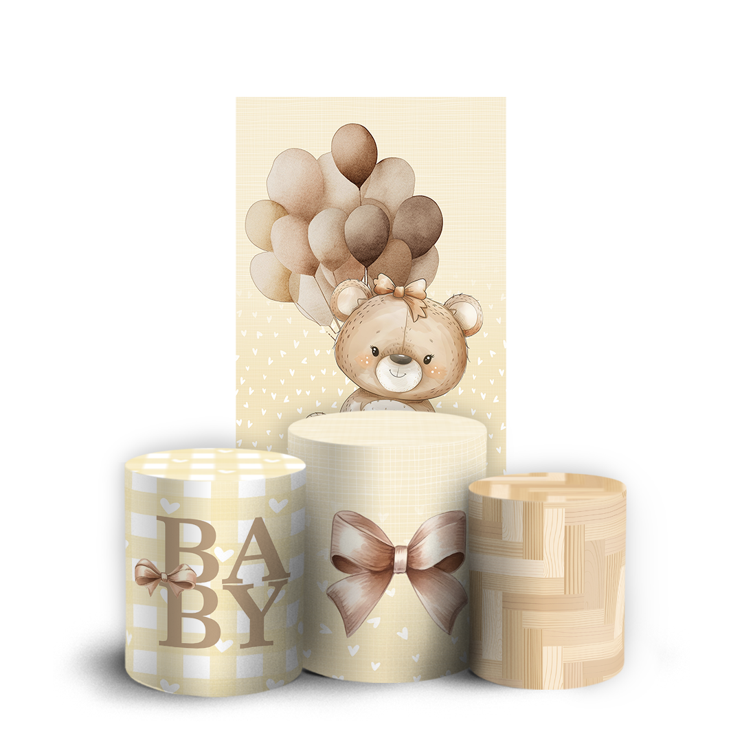 Nosso kit Faixa + Trio de Capas para Cilindros Sublimadas, possuem acabamento em overloque e é ideal para criar aquela decoração de tirar o folego!