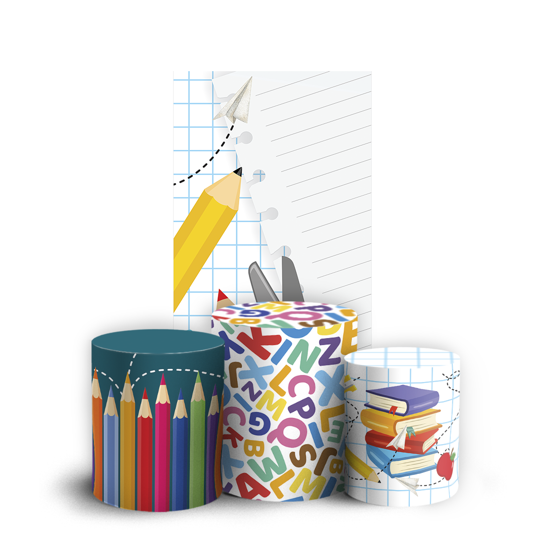 Nosso kit Faixa + Trio de Capas para Cilindros Sublimadas, possuem acabamento em overloque e é ideal para criar aquela decoração de tirar o folego!