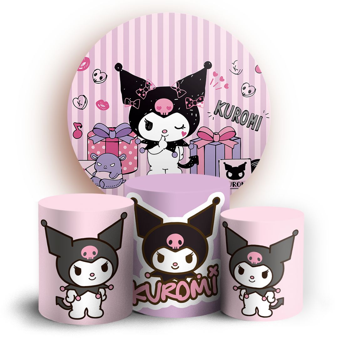 KIT Redondo e Trio - Kuromi Rosa - Sublimado 3D