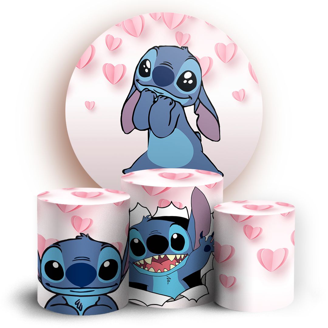 KIT Redondo e Trio - Lilo E Stitch Rosa - Sublimado 3D