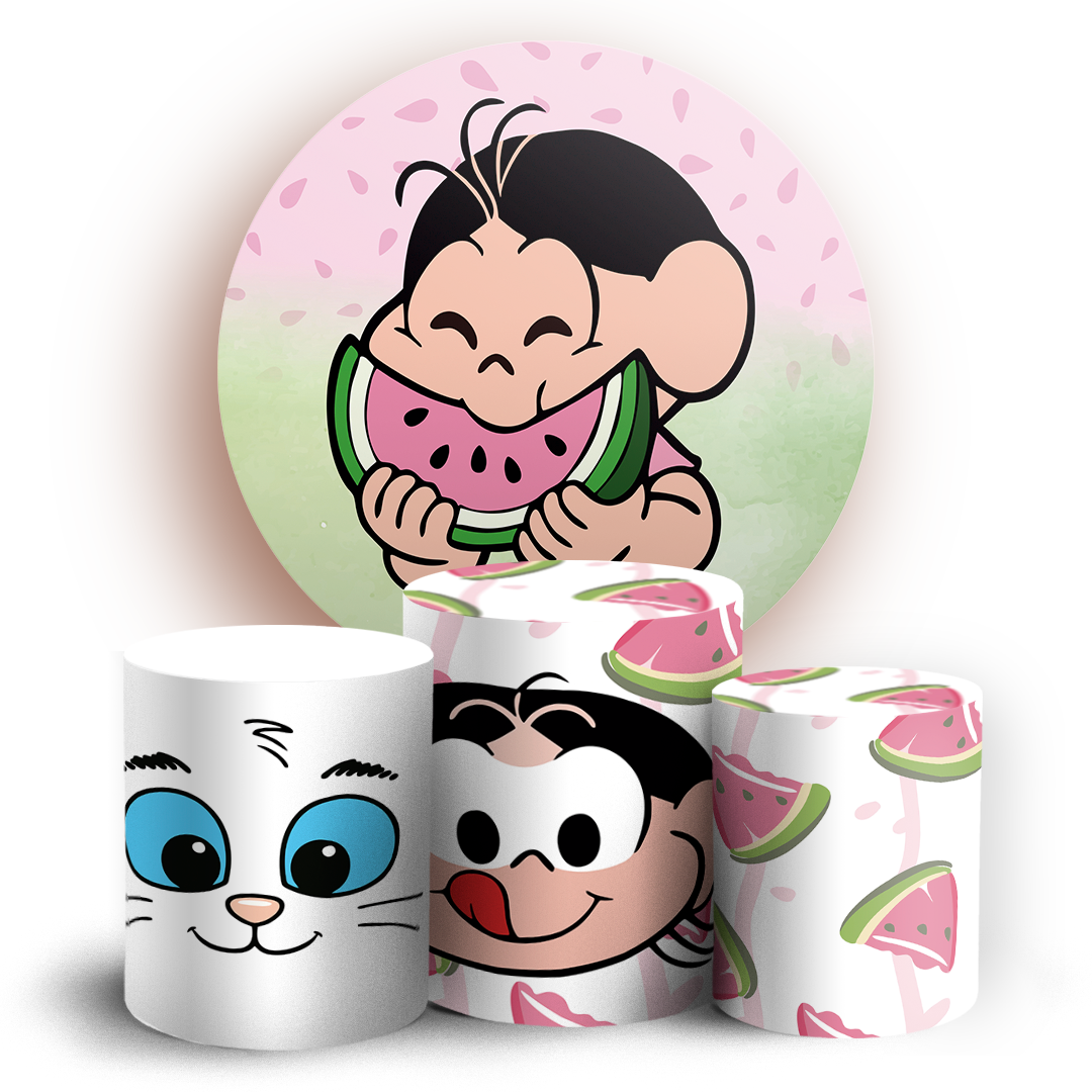 O kit Painel Redondo + Trio de capas para cilindros sublimados veste fácil, possuem acabamento overloque e elásticos nas bordas para facilitar a montagem da decoração