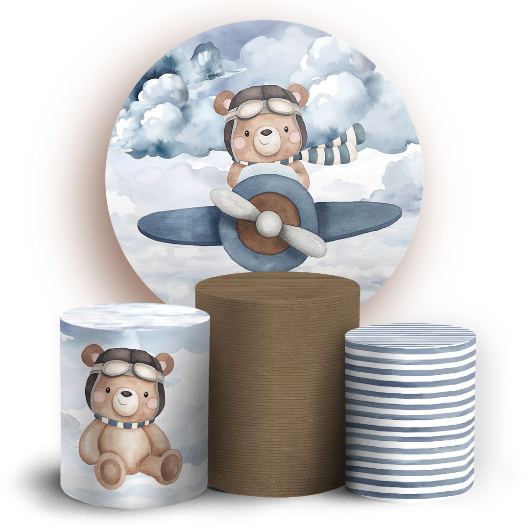 KIT Redondo e Trio - Ursinho Aviador - Sublimado 3D