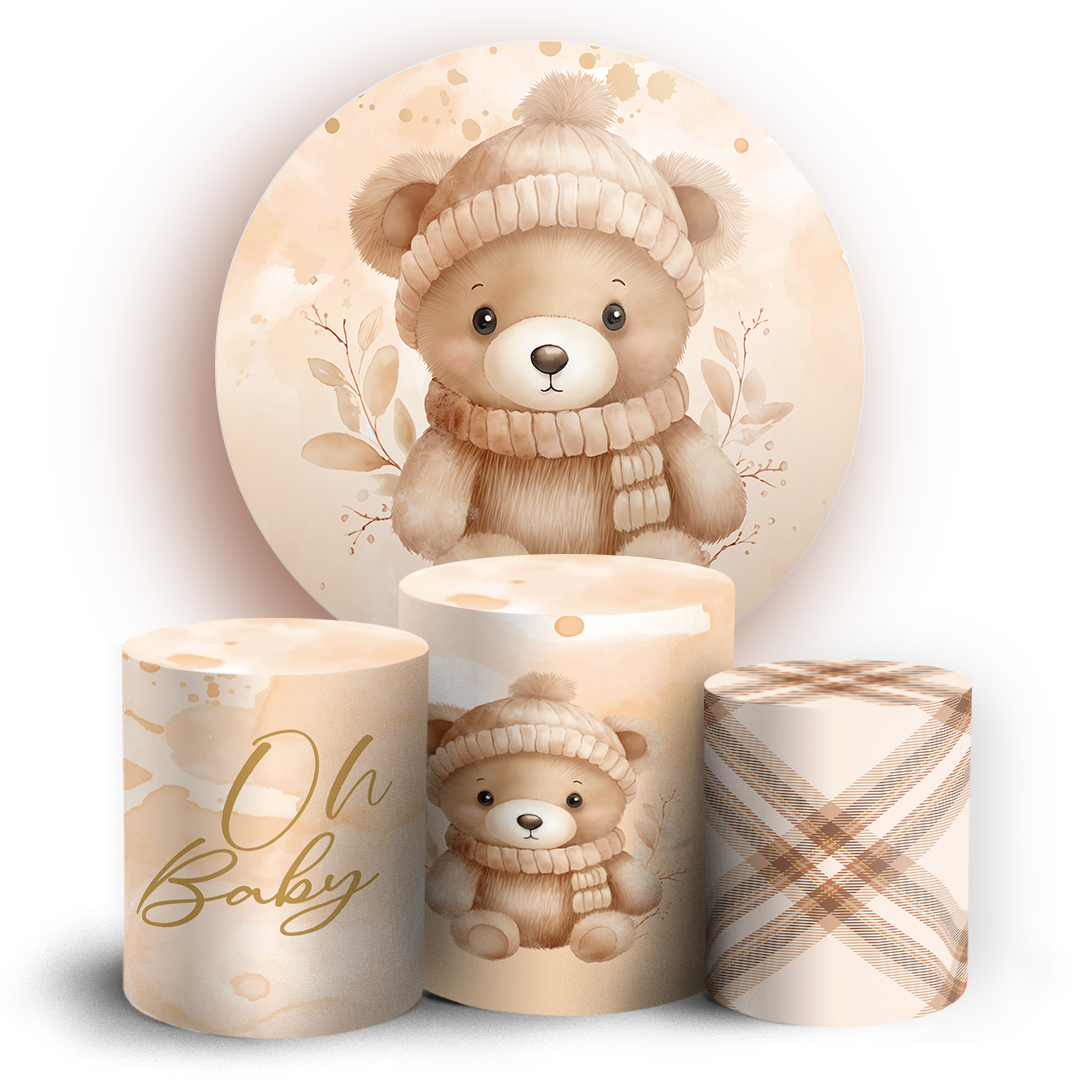 KIT Redondo e Trio - Ursinho Marrom - Sublimado 3D