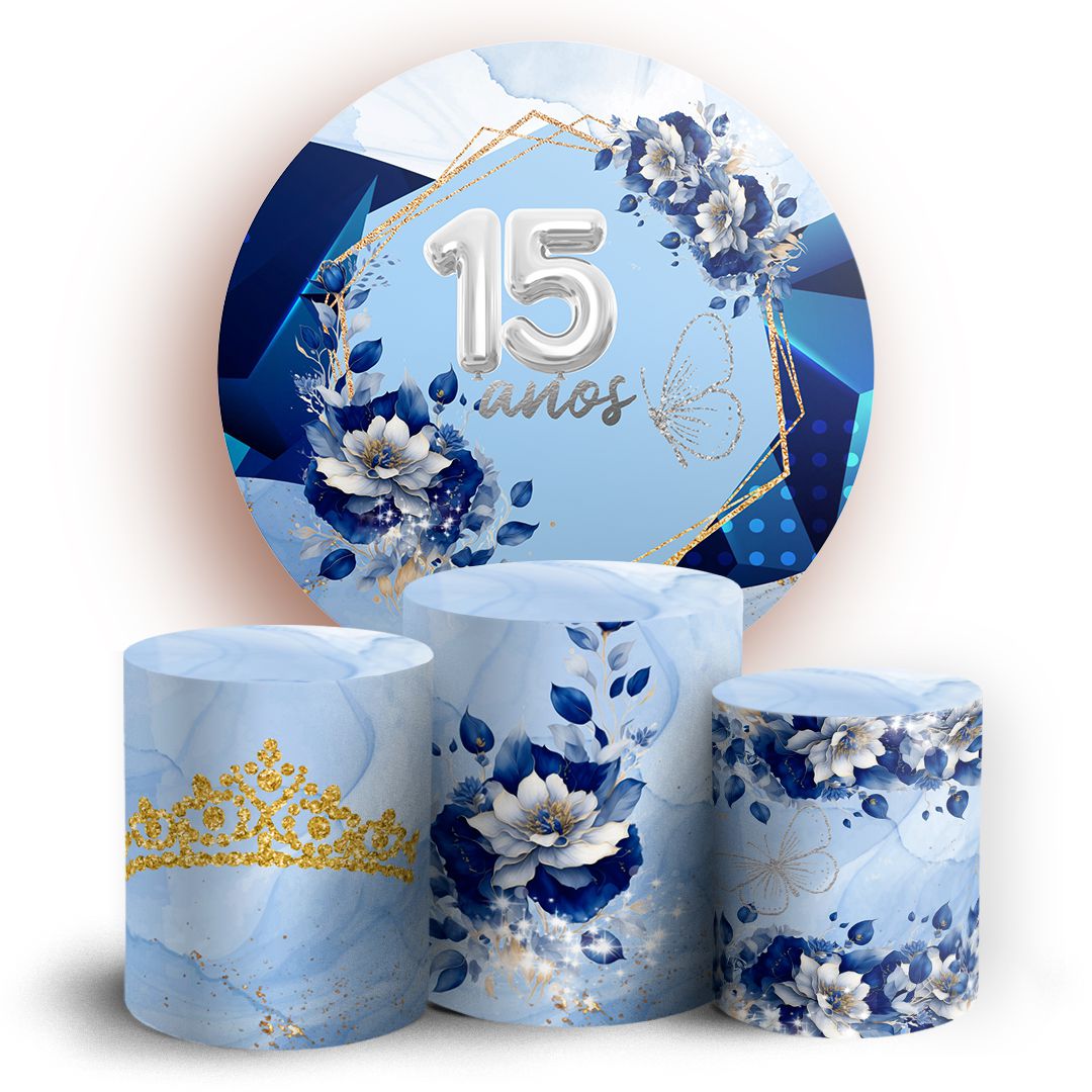 KIT Redondo e Trio - 15 Anos Azul - Sublimado 3D
