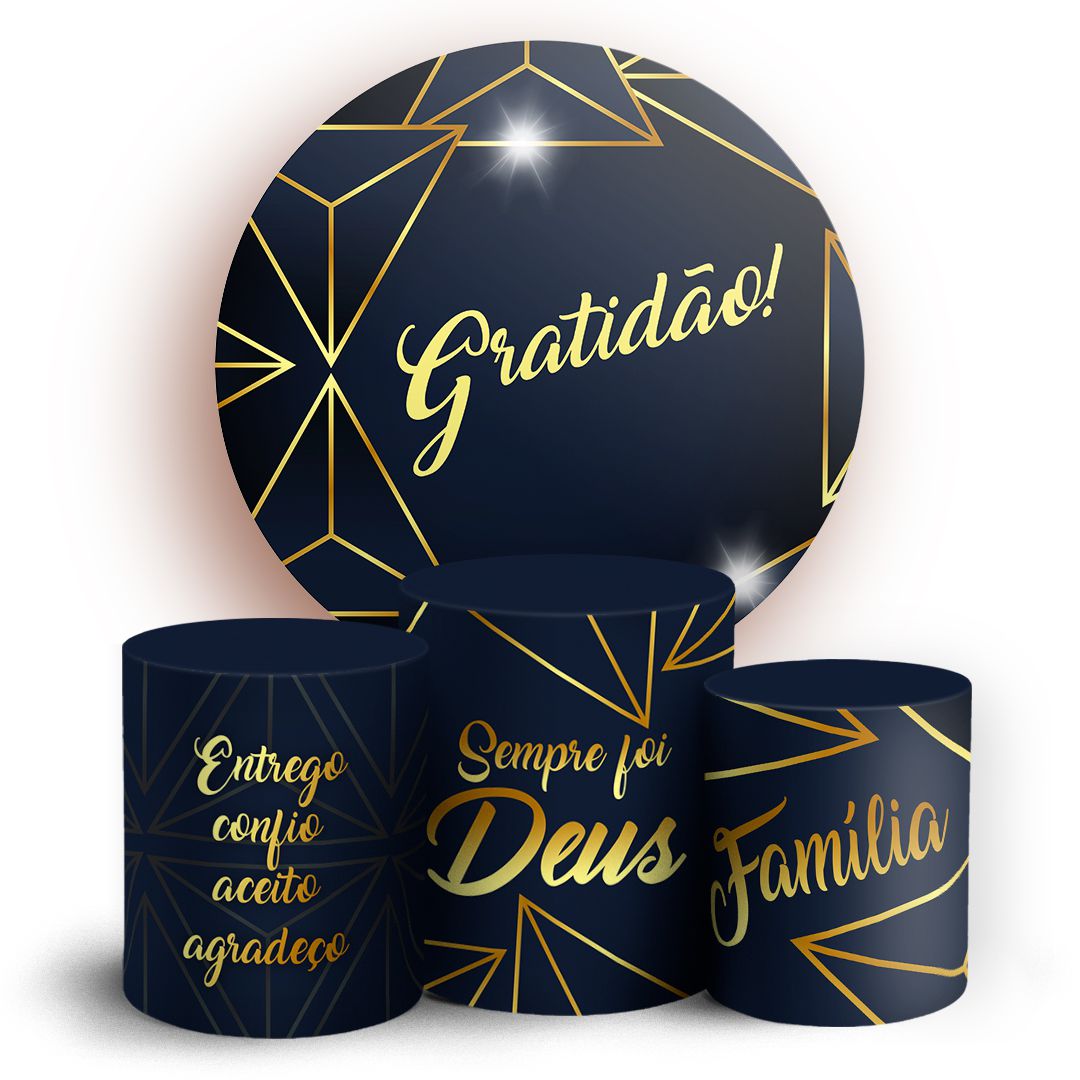 O kit Painel Redondo + Trio de capas para cilindros sublimados veste fácil, possuem acabamento overloque e elásticos nas bordas para facilitar a montagem da decoração
