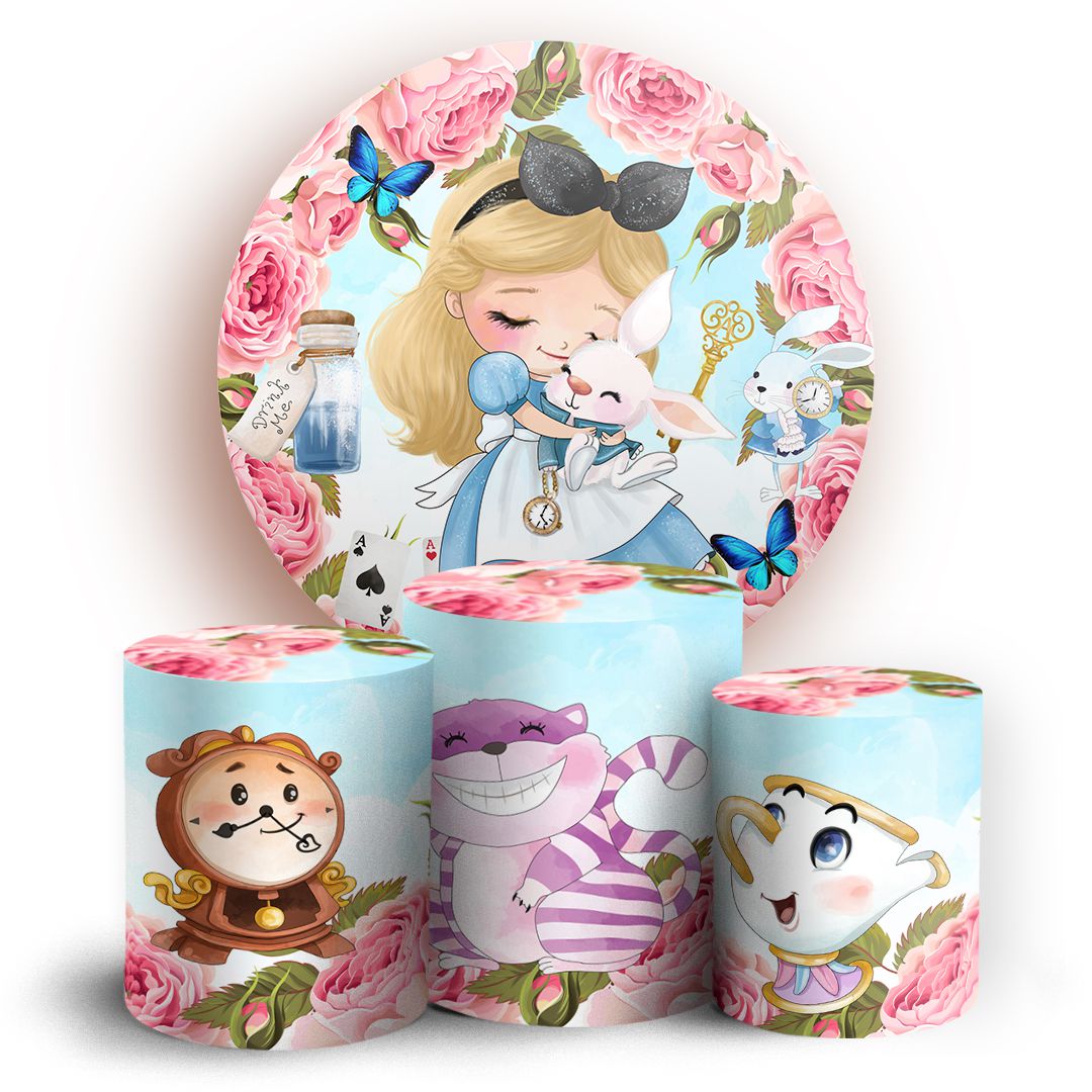 KIT Redondo e Trio - Alice Pais das Maravilhas - Sublimado 3D