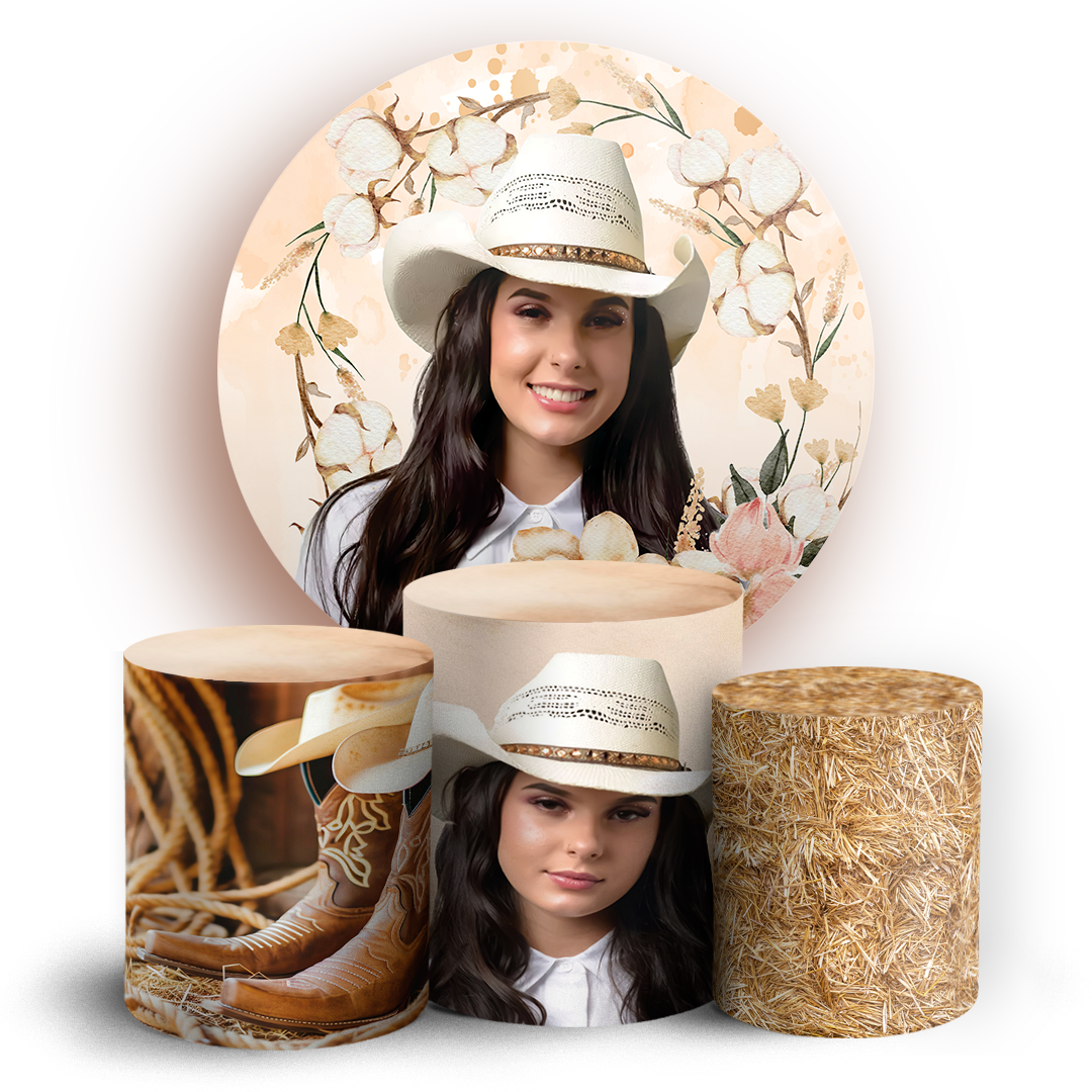 O kit Painel Redondo + Trio de capas para cilindros sublimados veste fácil, possuem acabamento overloque e elásticos nas bordas para facilitar a montagem da decoração