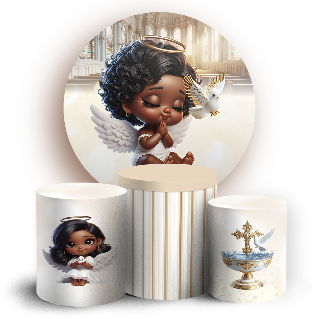 KIT Redondo e Trio - Anjos Batismo - Sublimado 3D