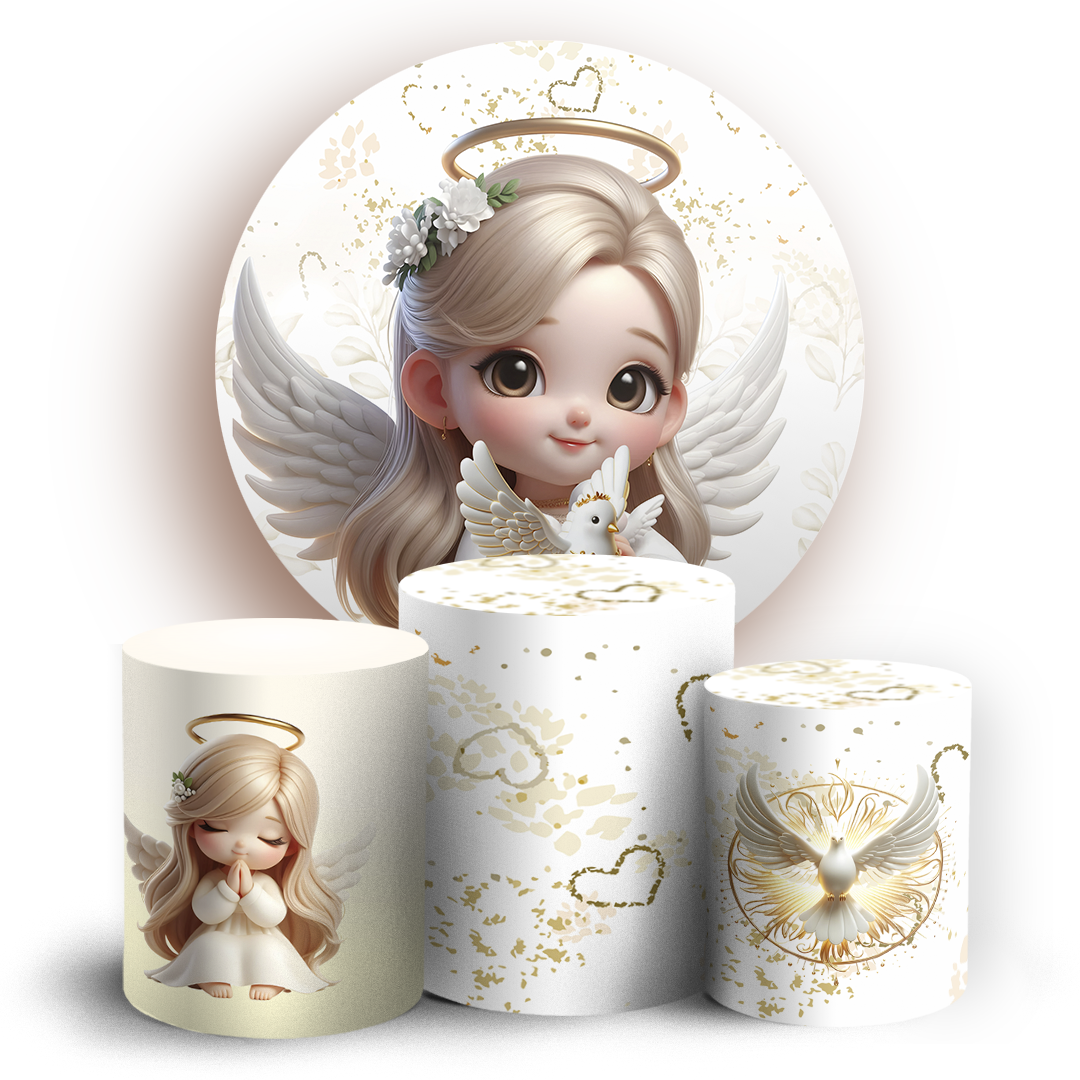 KIT Redondo e Trio - Anjos Batismo - Sublimado 3D