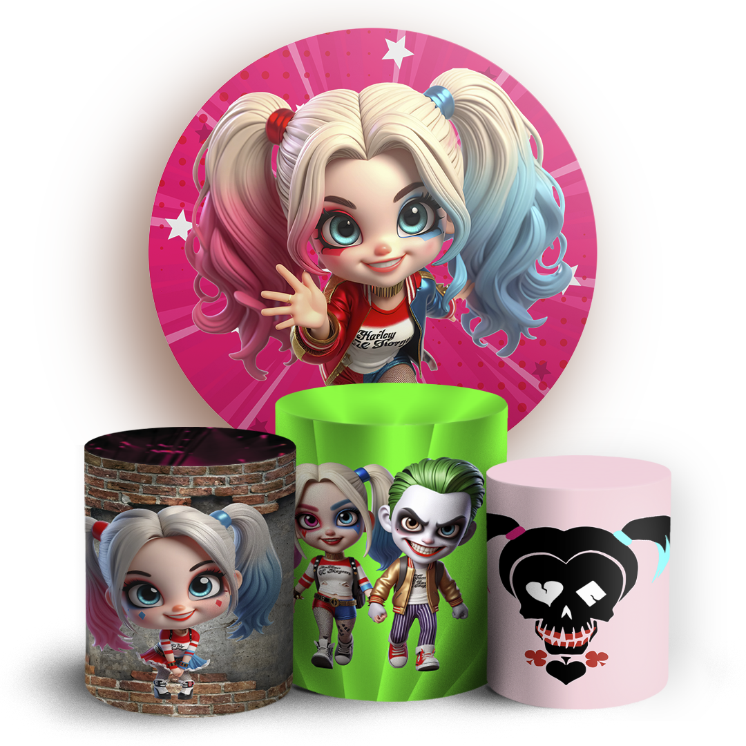 KIT Redondo e Trio - Arlequina e Coringa - Sublimado 3D